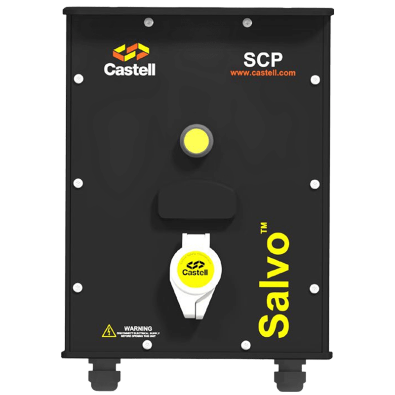 Il Salvo Control Panel è il dispositivo che collega il sistema di blocco del rimorchio con il sistema di apertura della porta di carico. È costituito da un pannello a parete, con un interruttore a chiave Castell che consente le operazioni nella baia di carico e un indicatore di status e funzionamento.