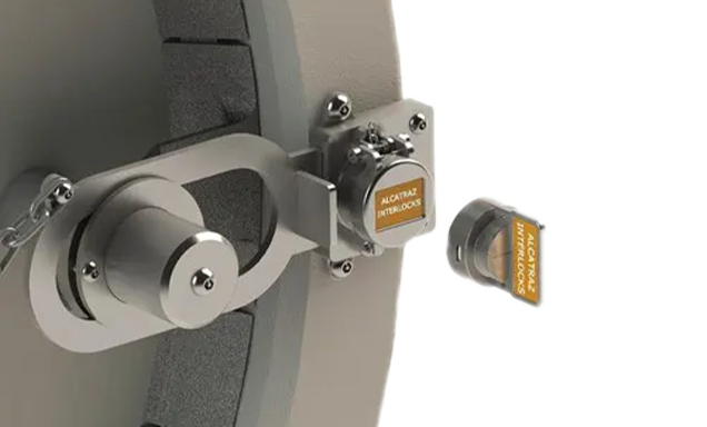 L’interlock Alcatraz per trappole di lancio (CL) è progettato per interbloccare l’apertura del portellone, impedendo la rimozione del tappo di sfiato. La rimozione del perno di chiusura, e la conseguente apertura del portellone, sono possibili solo con l’inserimento della chiave nell’interlock, che potrà poi essere rilasciata solamente richiudendo il portellone e rimettendo in posizione il tappo di sfiato.